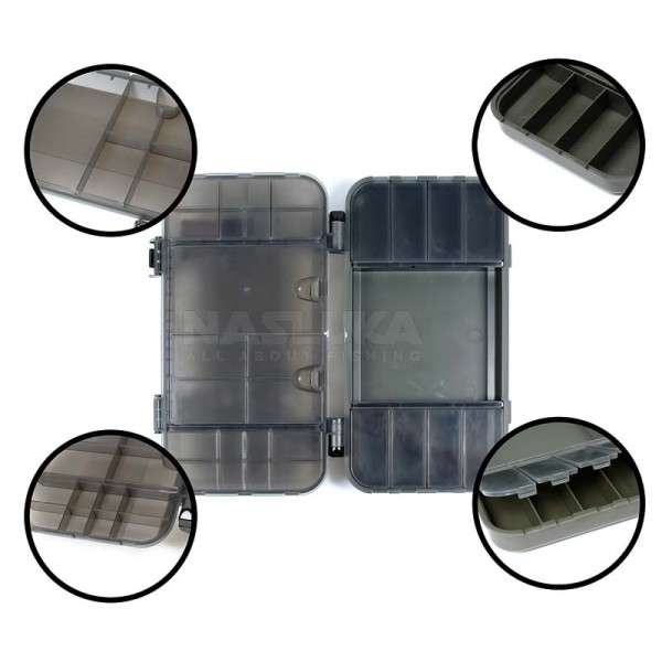 Моделът предлага изключителна функционалност благодарение на вътрешните разделители, които позволяват допълнителна организация на различни по размер куки или вирбели.