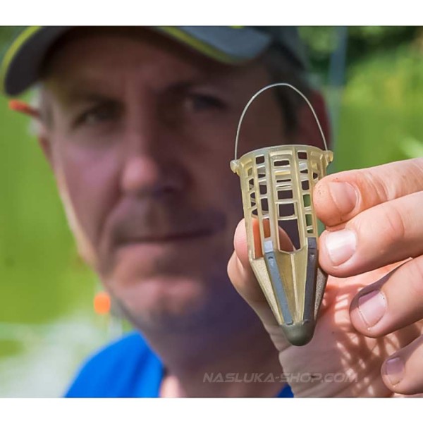 Моделът е със заострен връх, като същевременно в предната част е концентрирано и утежнението на всяка хранилка. Всичко това способства за постигане на прецизност и точност при замятане.