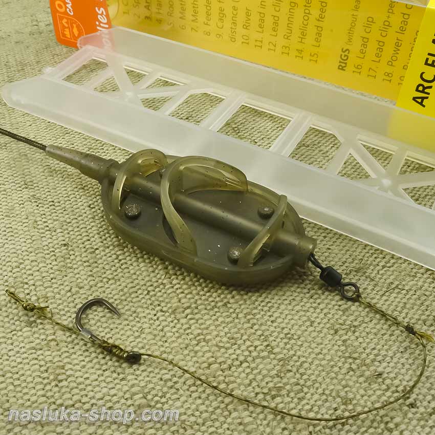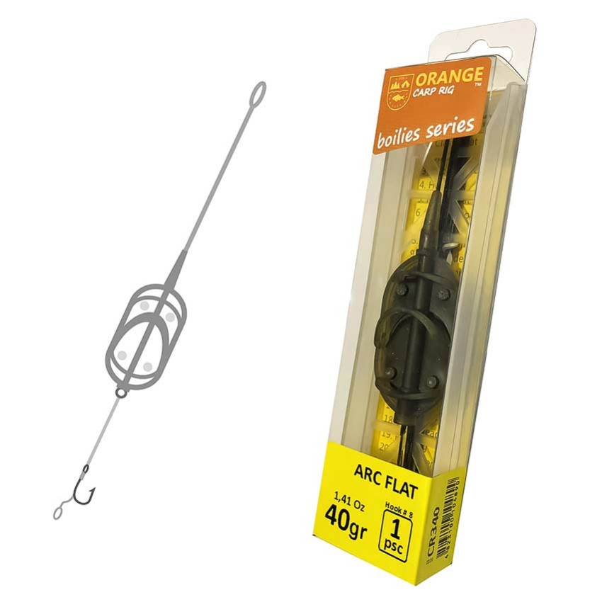 Монтаж за фидер Arc Flat - Rig 32 включва плоска фидер хранилка Orange Arc Flat, която остава на дъното винаги с утежнената страна надолу и хранителния микс нагоре, така че мигновено може да бъде открита от рибите.