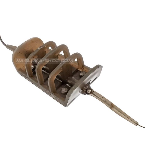 Монтаж за фидер River Feeder Rig включва обемна, дълбока метод фидер хранилка, чиято конструкция задържа ефективно захранващия микс при риболов на река - основно с бавно или среднобързо течение.