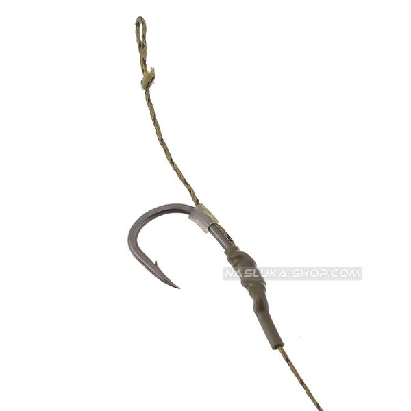 За изграждане на монтажа е използван невероятно здрав лидкор Ockert 45lb с дължина 70 см и специален плетен повод Orange Carp x8 20lb с дължина 14 см.
