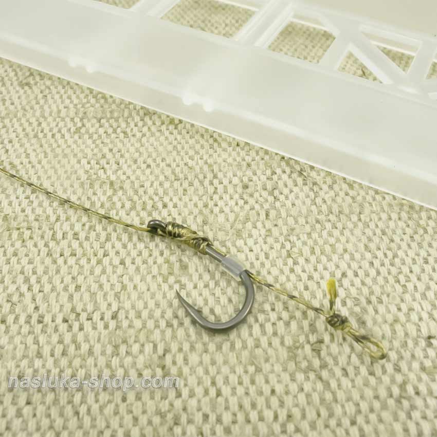 За изграждане на монтажа е използван невероятно здрав лидкор Ockert 45lb с дължина 70 см и специален плетен повод Orange Carp x8 20lb с дължина 10 см.
