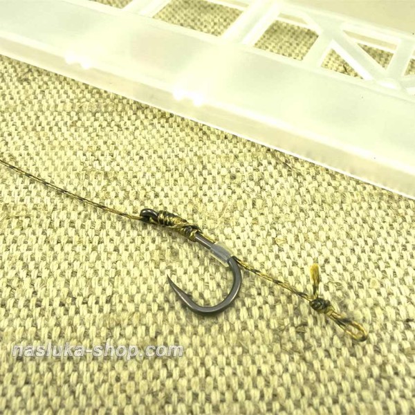 За изграждане на монтажа е използван невероятно здрав лидкор Ockert 45lb с дължина 70 см и специален плетен повод Orange Carp x8 20lb с дължина 10 см.