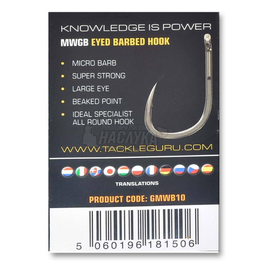Guru MWGB е изключително здрава и качествена кука с чудесни характеристики. Притежава голяма острота и ясно изразена микро контра, което позволява използването и за почти всички видове риболов.