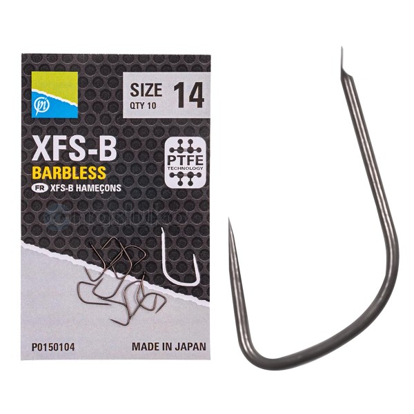 Прегледите над Preston XFS-B Spade Barbless, Куки без контра, 10 бр.