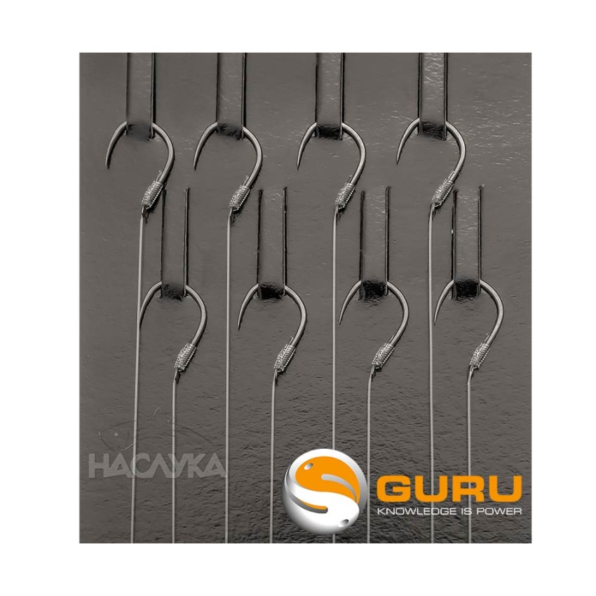 Guru X-Strong Ready Rigs са с оптимален баланс между размера на куката и диаметърът на влакното. Куките са без контра с голяма острота и мигновено проникване.