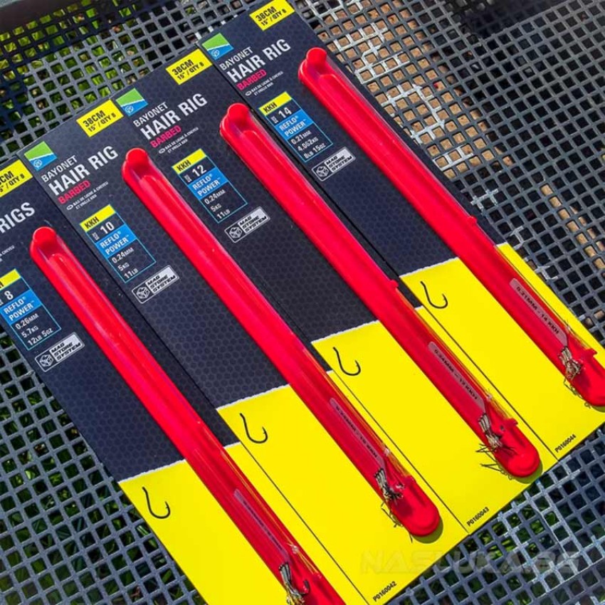 Всяка опаковка Preston Innovation Bayonet Hair Rig - Barbed съдържа 8 повода на совалка, която директно може да се постави в класьорите Mag Store System.