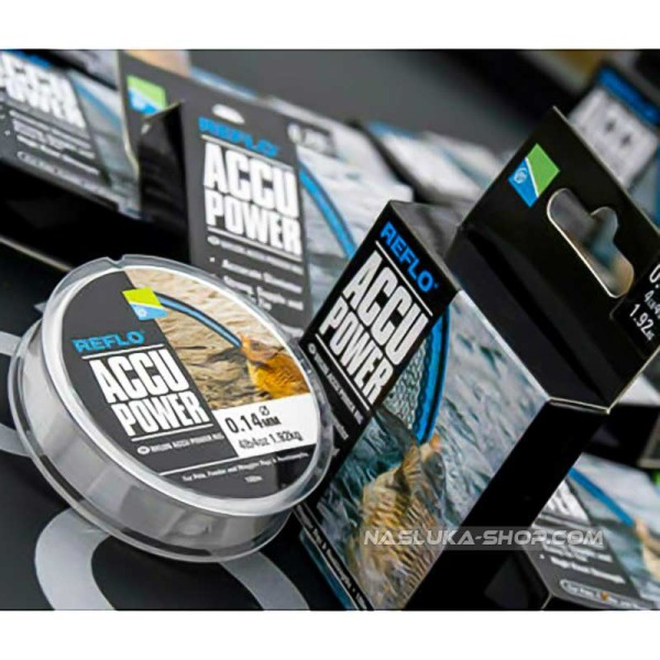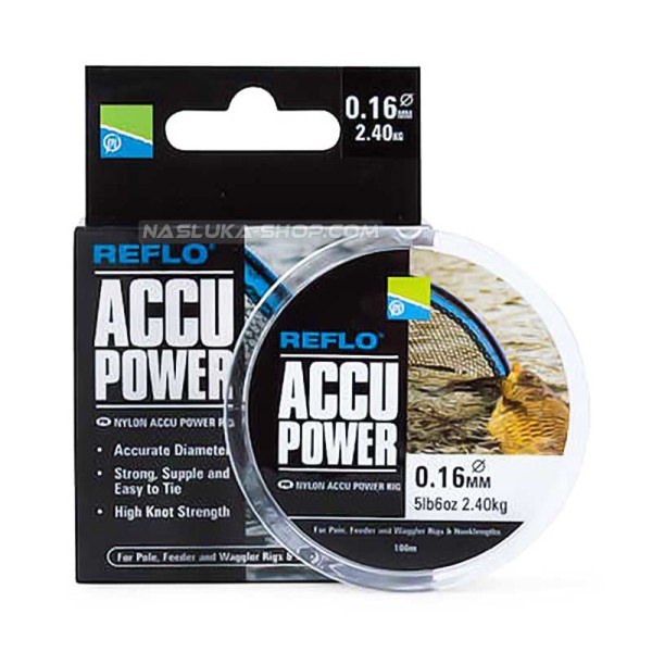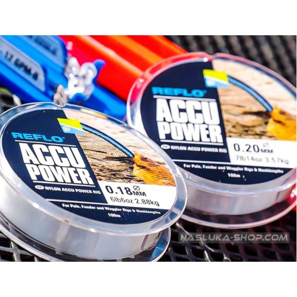 Preston Reflo Accu Power е в прозрачен цвят и се предлага на ролки по 100 метра.
