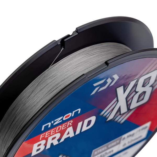 Плетеното влакно Daiwa N'Zon Feeder Braid x8 е създадено специално за фидер риболов на дълги дистанции. 🎣 Гладката повърхност осигурява безшумно преминаване през водачите и максимални разстояния при замятане.