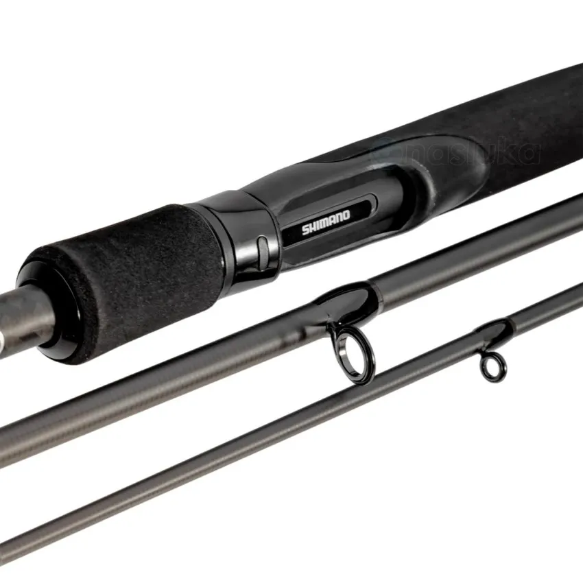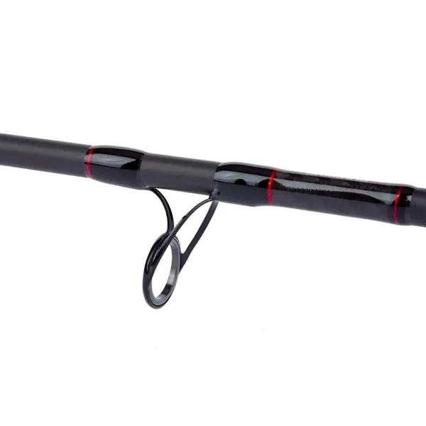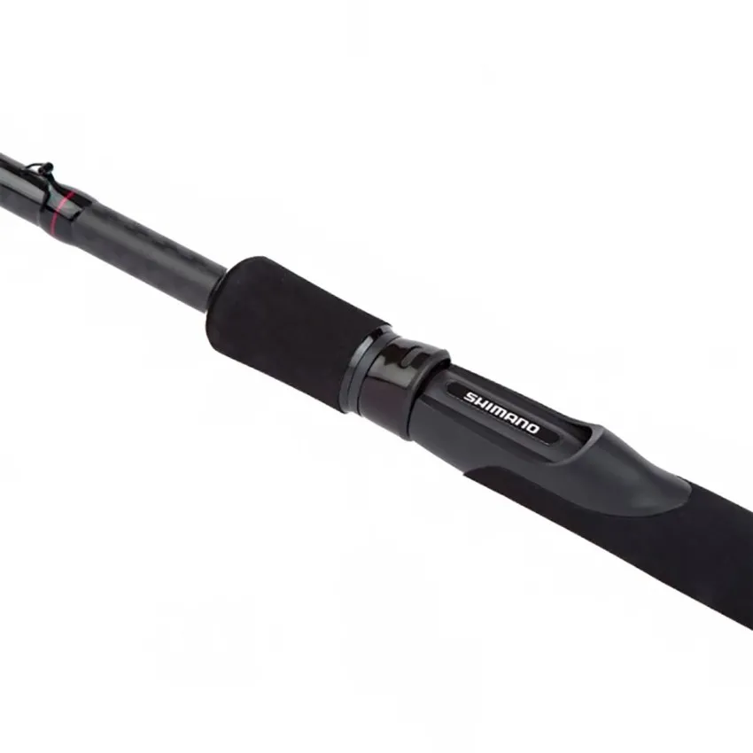 Тъмносивата карбонова бланка с червени акценти придава модерен вид. Shimano Hardlite водачи и VSS макародържач осигуряват комфорт и дълготрайност.