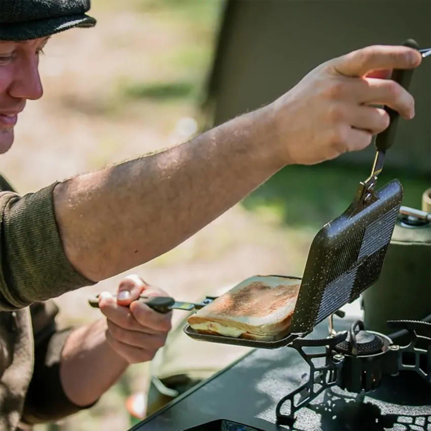 Trakker Armolife Marble Sandwich Toaster XL е незаменим помощник за всеки риболовец, който обича да готви вкусна храна на брега. 🔥 Този голям тостер за къмпинг съчетава професионално качество с лека и компактна конструкция.