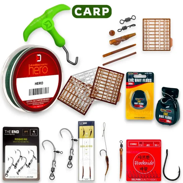 Комплектът The End Full Carp Set съдържа готови монтажи, куки, влакно и допълнителни аксесоари за ефективен шарански риболов. Идеален избор за риболовци, които търсят готови решения и качествени продукти на едно място. 🎣