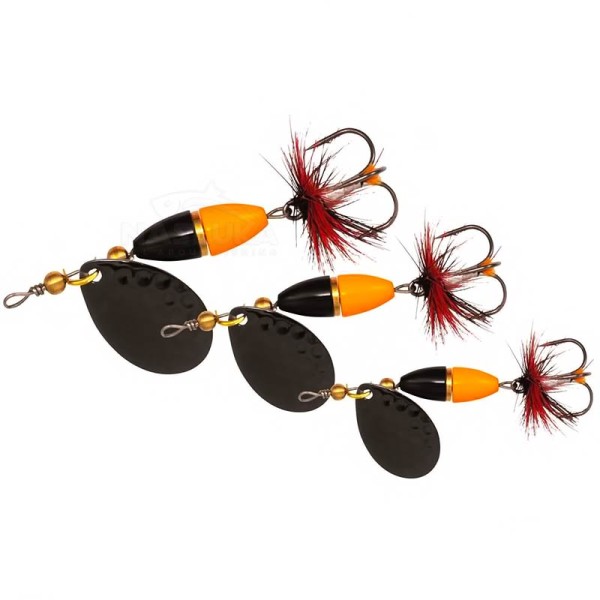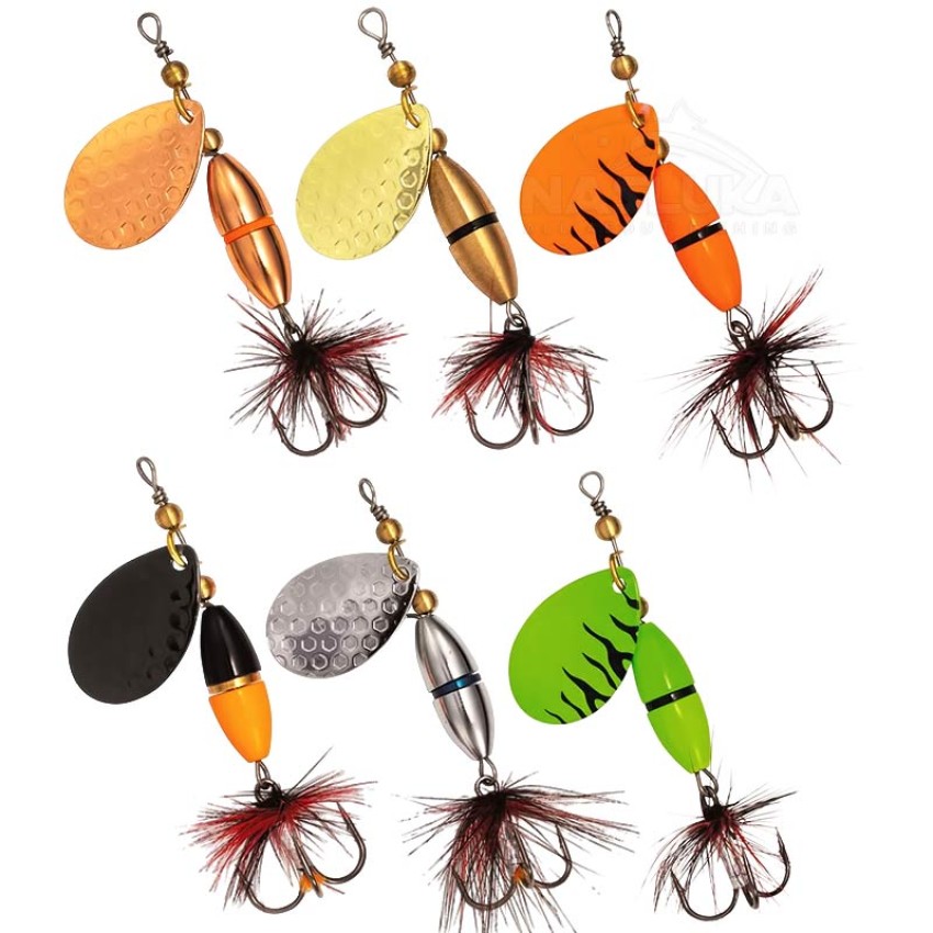 Листото е с класическа форма и е монтирано на ос с прецизно балансирани компоненти, които гарантират моментално завъртане при движение. Това прави блесната изключително ефективна дори при бавна проводка - подход, предпочитан при риболов на предпазливи риби или в студени води.