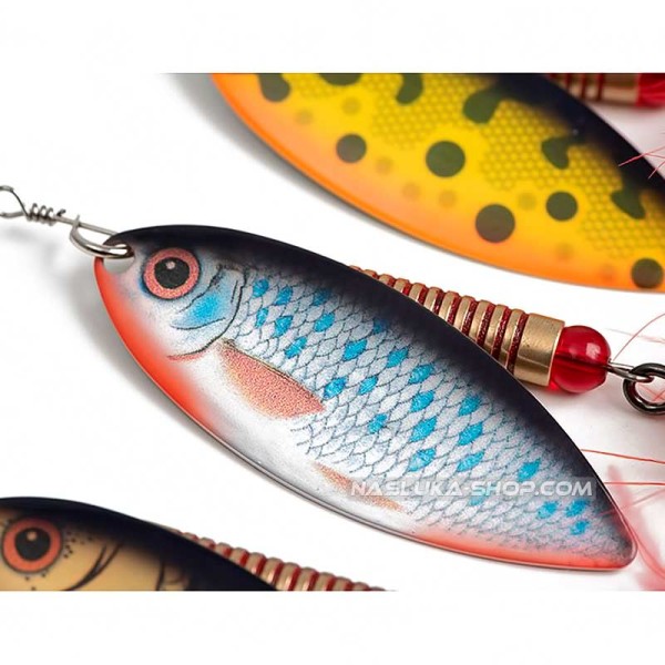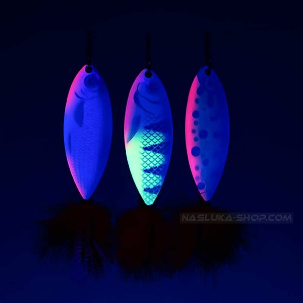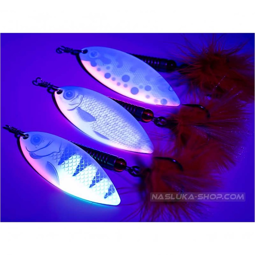 Fox Rage Leaf UV Spinners се предлагат в два размера - 3 и 6, като малките варианти са подходящи за пъстърва, распер, костур, а големите - за сом и трофейна щука.