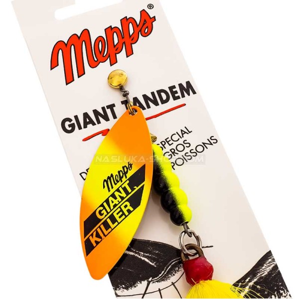 Mepps Giant Killer Tandem е базирана на Aglia Long, като формата на листото позволява приложение на блесната в реки, дори при по-силно течение.