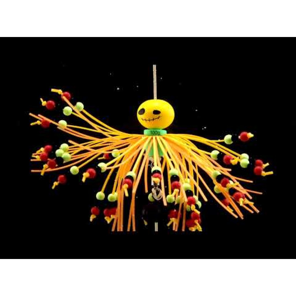 Ресните с разноцветни мъниста издават примамлив звук, който бързо привлича вниманието на рибите и ги провокира да атакуват. Има добавена и двойна тракалка.