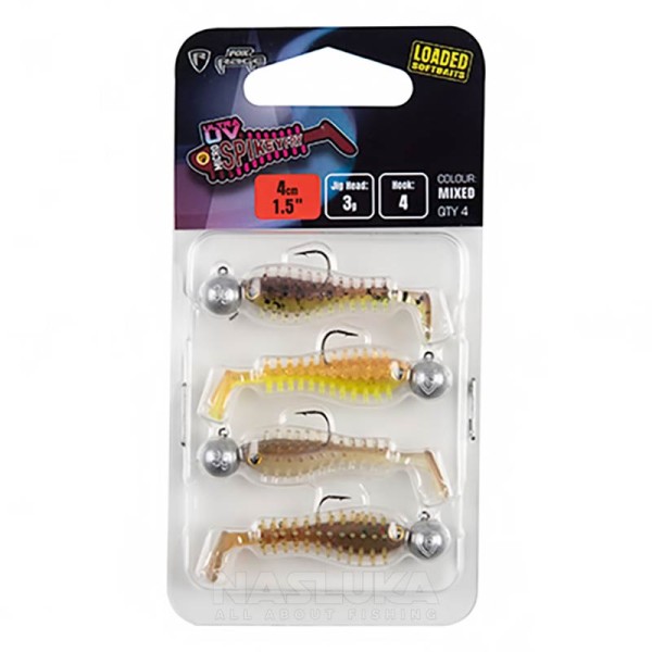 Комплект от 4 силиконови шада с джиг глави Fox Rage Ultra UV Micro Spikey Fry