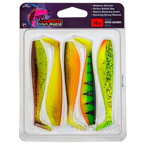 Fox Rage Zander Pro Shad Pack UV е комплект от 5 висококачествени силиконови шадове, създадени специално за спининг риболов. Всяка примамка е дълга 100мм и притежава Ultra UV технология, която осигурява повишена видимост в мътни води и при слаба светлина. 🐟