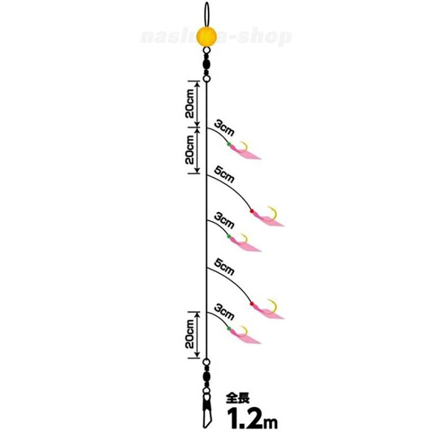 Моделът е с пет куки в разцветка Pink Skin. Те имитират успешно естествената храна, привличайки хищниците и увеличавайки шанса за техния улов.