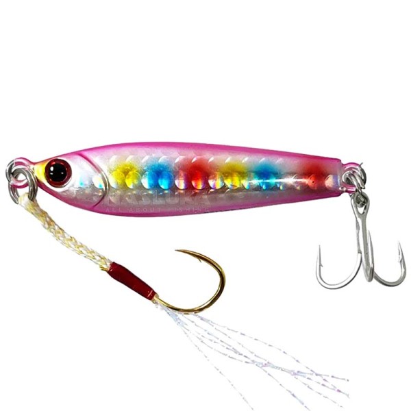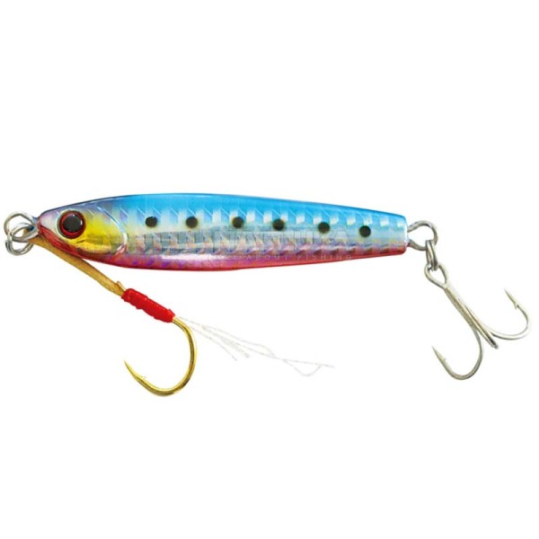 Джигът е оборудван с блестящо ламе и единична кука отпред, както и с тройна кука отзад, осигурявайки максимална ефективност при атаките на рибата.