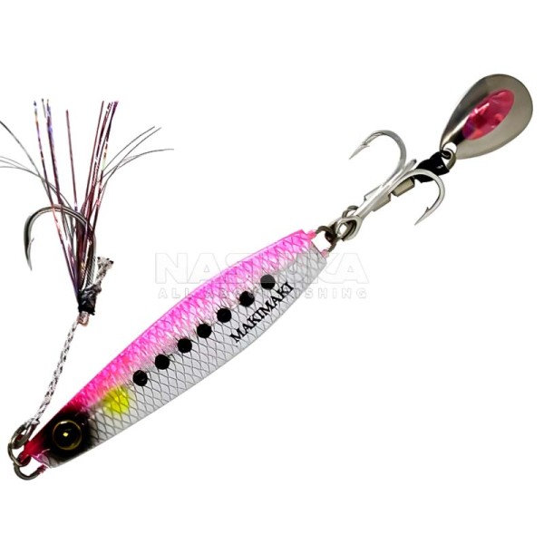 Оборудван с блестящо ламе и единична кука отпред и с тройна кука с холограмно листо отзад, Jack Eye Maki Maki предлага отлична защита от корозия и гарантира дълготрайност дори при соленоводен риболов.