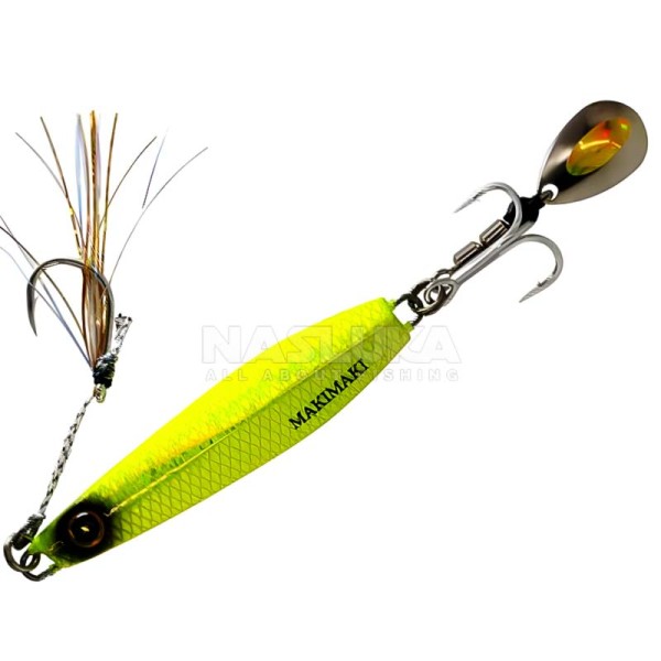 Оборудван с блестящо ламе и единична кука отпред и с тройна кука с холограмно листо отзад, Jack Eye Maki Maki предлага отлична защита от корозия и гарантира дълготрайност дори при соленоводен риболов.