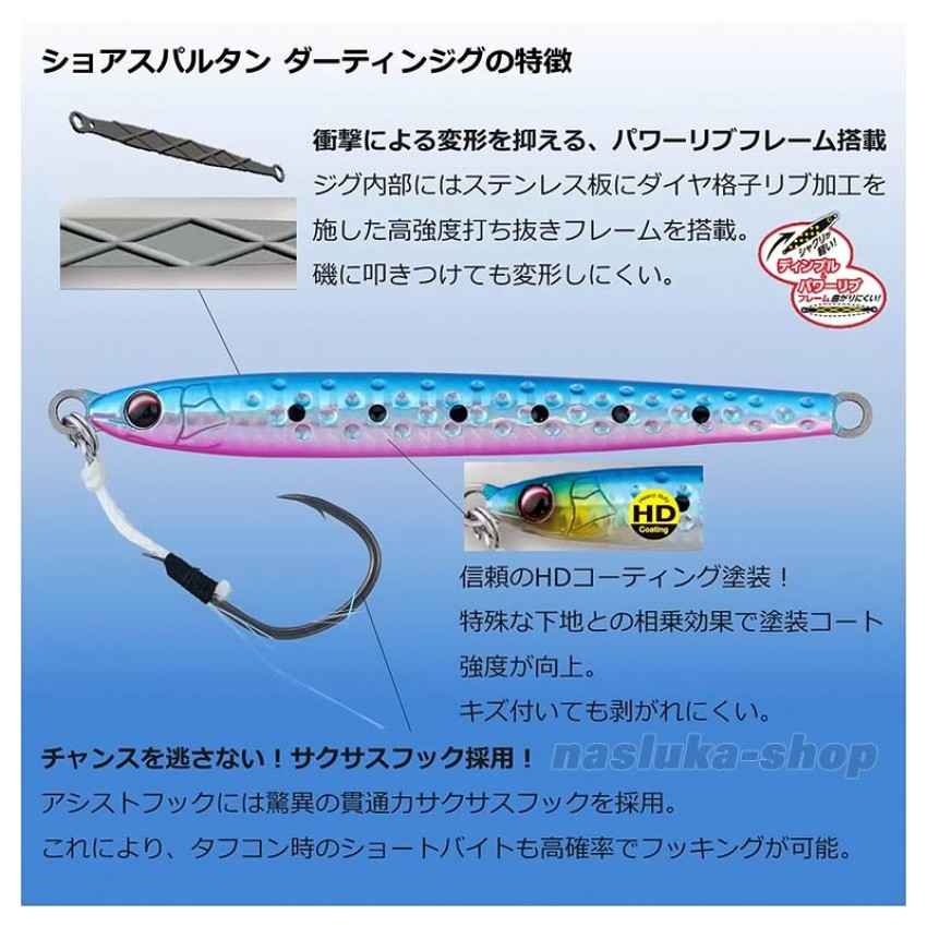 Daiwa Shore Spartan Dartin' Jig е високоефективен пилкер, предназначен за риболов от брега, известен като shore jigging. Със своята издължена форма и оптимизирано тегло, тази примамка позволява изключително далечни замятания, достигайки до зони, недостъпни за други примамки.
