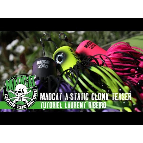 Нов модел изключително успешен тийзър за сом със силиконови пипала за риболов на кльонк. MADCAT A-Static Clonk Teaser излъчва вибрации под водата, които достигат дъното много бързо. Мънистата създават страхотен "тракащ" звук и с помощта на силиконовите пипала привличат сома от разстояние. A-Static версията е с гумирано покритие на куките, за да се сведе до минимум електрическото поле, дразнещо сома.