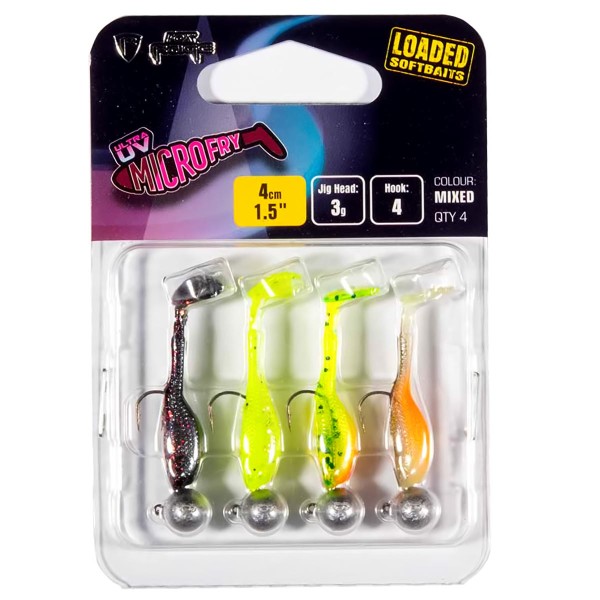 Сет шадове с джиг глави Fox Rage MicroFry UV Mixed, 40 мм, 3 г, 4 бр.