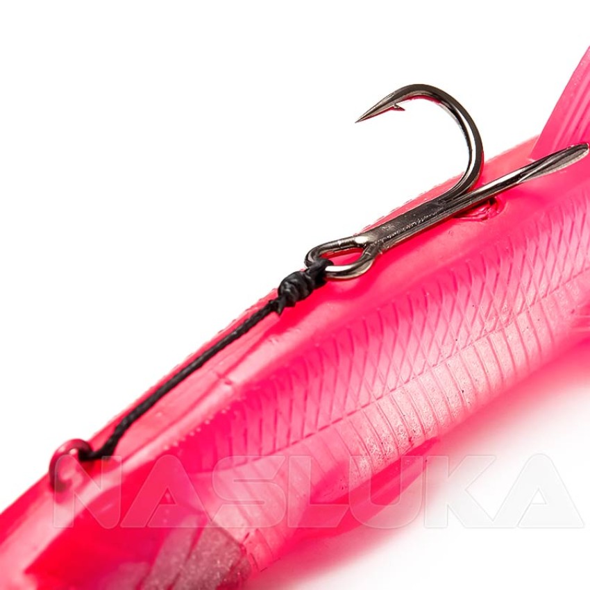 Оборудвана с мощна, здрава и много остра двойна кука, фиксирана с магнит към тялото.