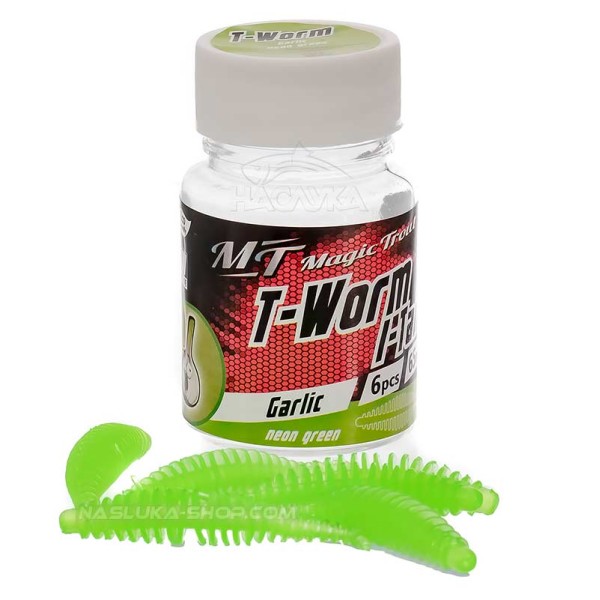 Прегледите над Силиконови ароматизирани примамки Magic Trout T-Worm I-Tail, Neon Green