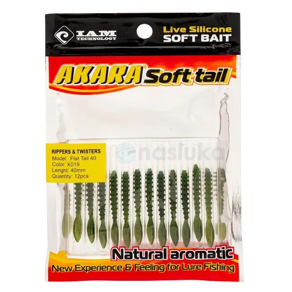 Силиконови примамки Akara Flat Tail 40 мм, цвят X019, 12 бр.