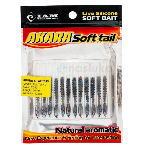 Силиконови примамки Akara Flat Tail 40 мм, цвят X040, 12 бр.