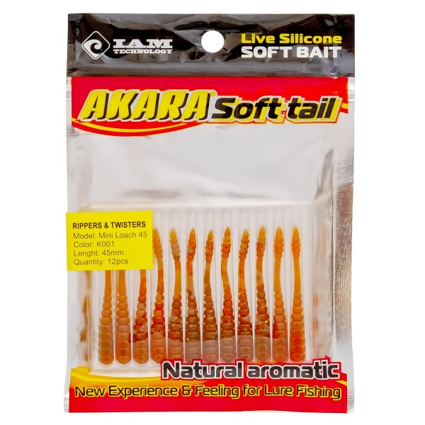 Силиконови примамки Akara Mini Loach 45 мм, цвят K001, 12 бр.