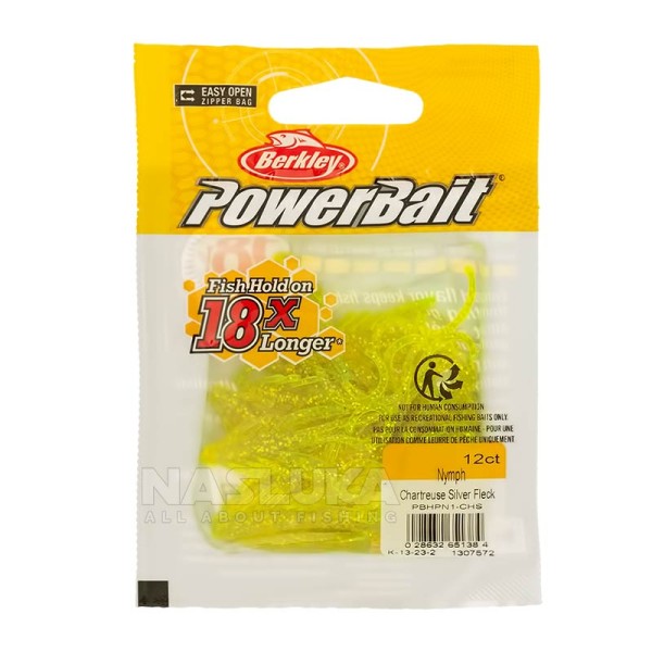 Силиконови примамки Berkley Powerbait Power Nymph 2 см, 12 бр., цвят Chartreuse Silver Fleck