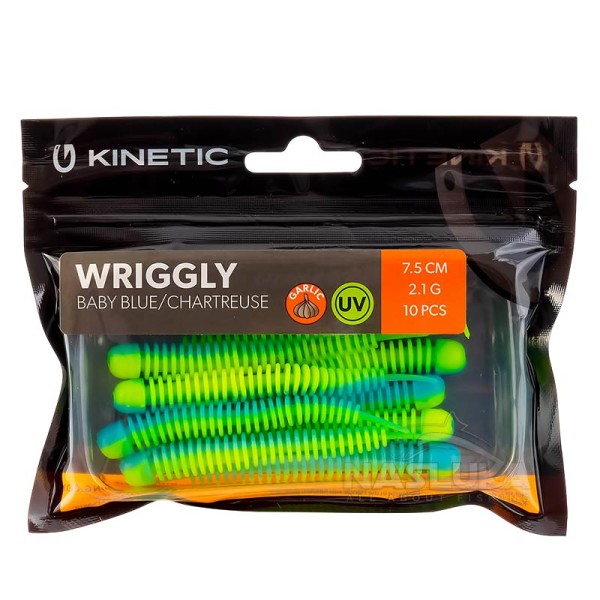 Kinetic Wriggly намират отлично приложение при различни монтажи — с джиг глава, чебурашка или Carolina/ Texas Rig. Богатата цветова гама покрива всякакви риболовни ситуации.