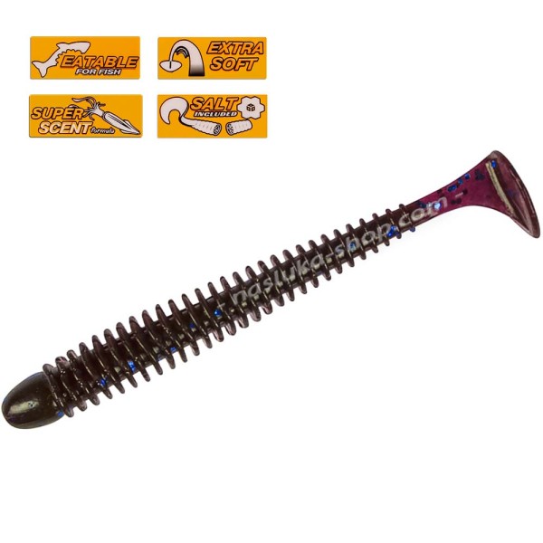 Оребреното тяло създава допълнителни вибрации, които заедно с атрактивното движение на примамката активно привличат рибите и те смело атакуват силикона.
