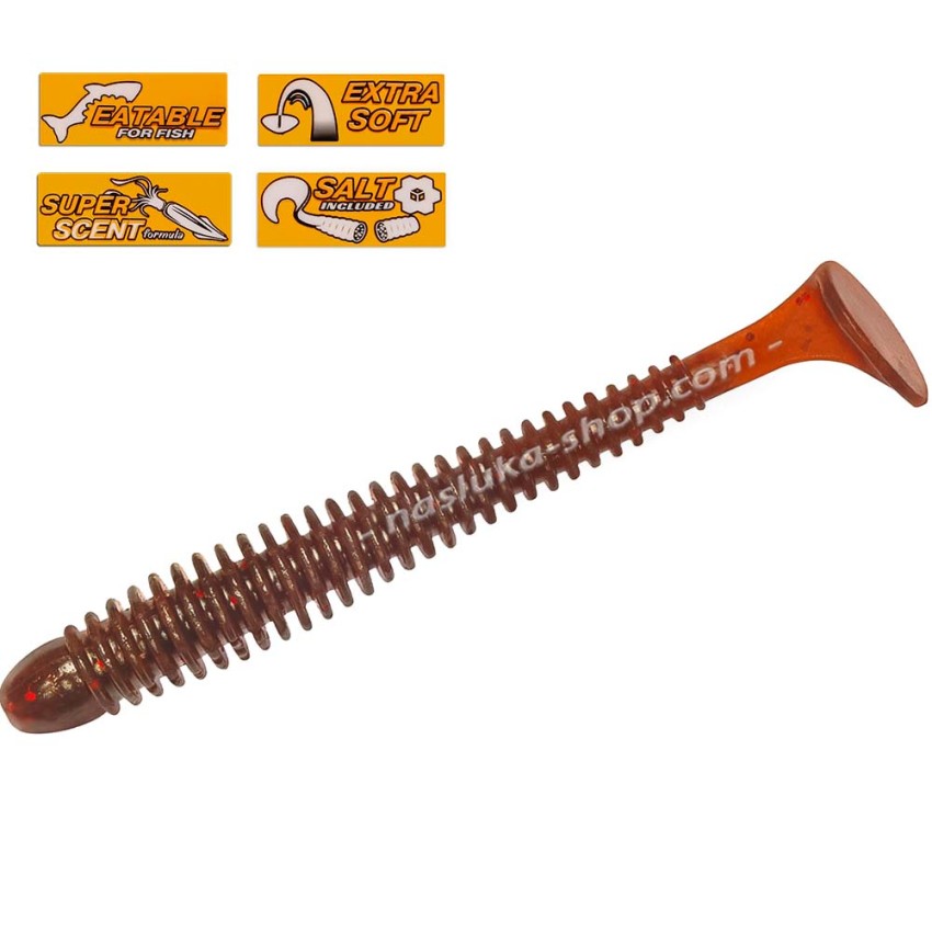 Оребреното тяло създава допълнителни вибрации, които заедно с атрактивното движение на примамката активно привличат рибите и те смело атакуват силикона.