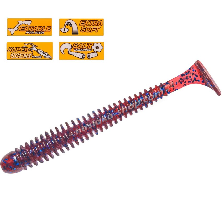 Оребреното тяло създава допълнителни вибрации, които заедно с атрактивното движение на примамката активно привличат рибите и те смело атакуват силикона.