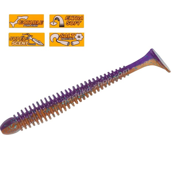 Оребреното тяло създава допълнителни вибрации, които заедно с атрактивното движение на примамката активно привличат рибите и те смело атакуват силикона.