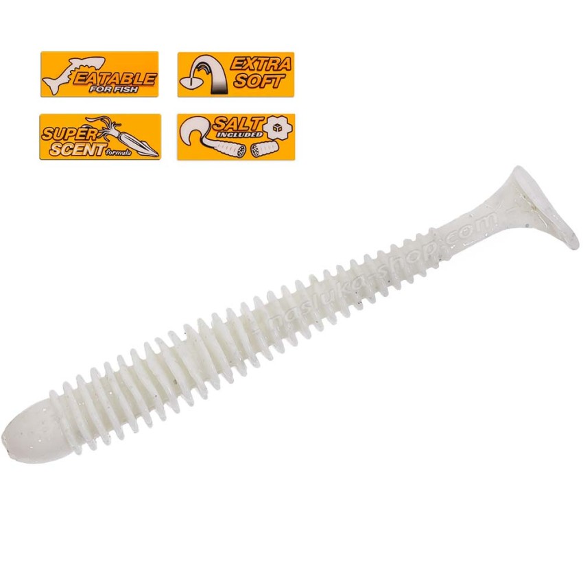 Оребреното тяло създава допълнителни вибрации, които заедно с атрактивното движение на примамката активно привличат рибите и те смело атакуват силикона.