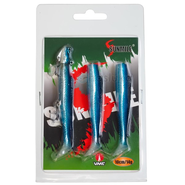 Прегледите над Комплект от 3 силиконови шада с джиг глава и куки Sunmile, Blue, 10 см, 14 г