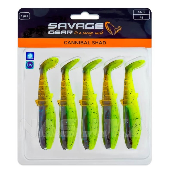 Savage Gear Cannibal Shad 8см, 5г, Green Pearl Yellow