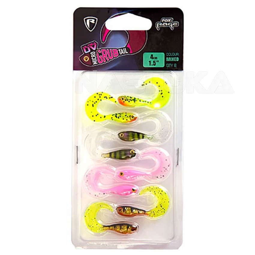 Прегледите над Комплект шадове Fox Rage Micro Grub Tail UV 4 см, Mixed, 8 бр.