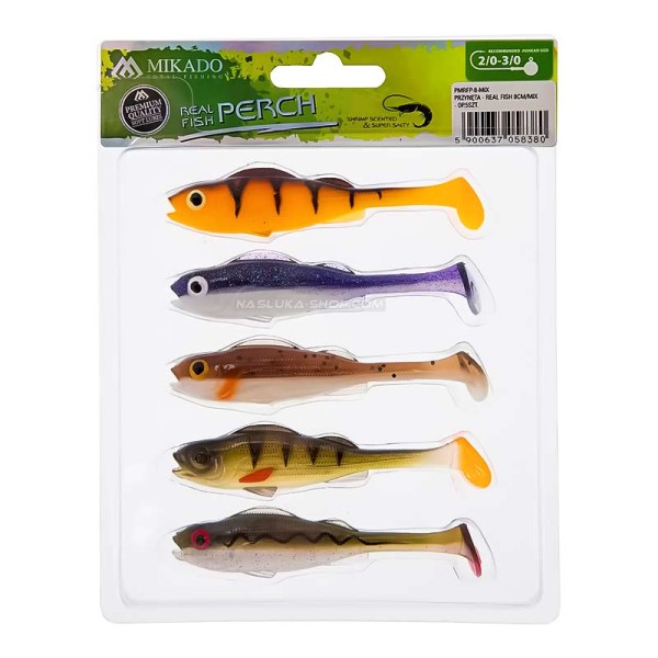 Прегледите над Микс от силиконови шадове Mikado Real Fish Perch 8 см, 5 бр.