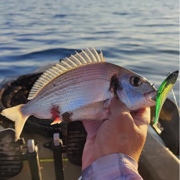 Тялото е изработено от мек, издръжлив силикон, който се движи реалистично дори при бавно водене. Формата и вибрациите му имитират перфектно движение на ранена рибка, а фината игра на опашката привлича хищниците от дистанция. 💥