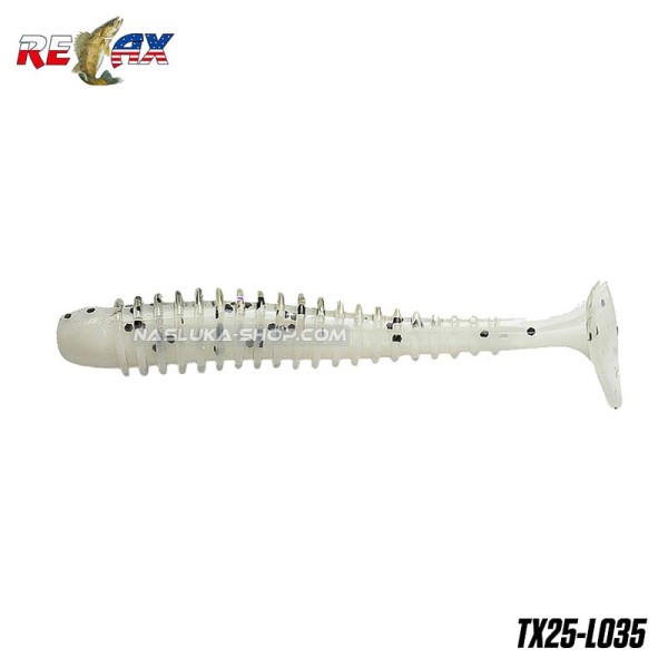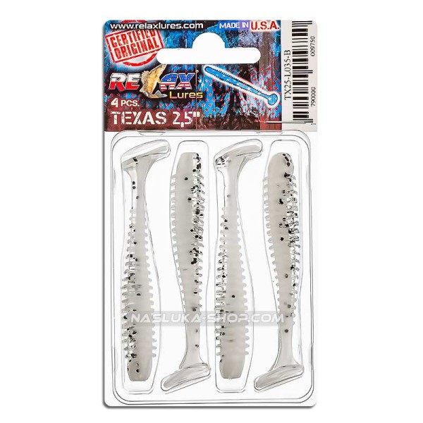 Важна специфика на силиконите Relax Texas е оребреното тяло, като пръстените създават допълнителна вибрация. Примамките са с предвиден офсет канал за лесно монтиране на куката