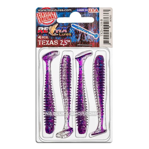 Важна специфика на силиконите Relax Texas е оребреното тяло, като пръстените създават допълнителна вибрация. Примамките са с предвиден офсет канал за лесно монтиране на куката