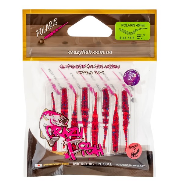 Силиконови примамки Crazy Fish Polaris, Squid, 45 мм, цвят 73, 8 бр.