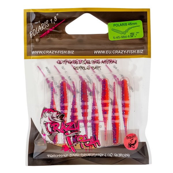 Опаковката съдържа 8 броя примамки Crazy Fish Polaris 45 mm.